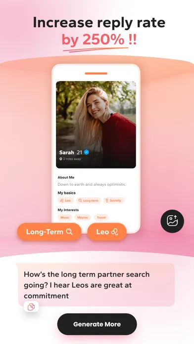 Just snap a screenshot of your chats or match's bio, and watch Wing AI whip up instant, personalized, and clever replies that get things going with a fun flirty vibe.
