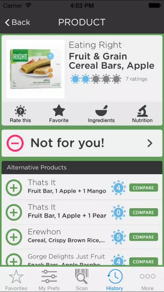 * Compare products - calories, fat, sodium, carbohydrates, fiber, sugar, protein, iron