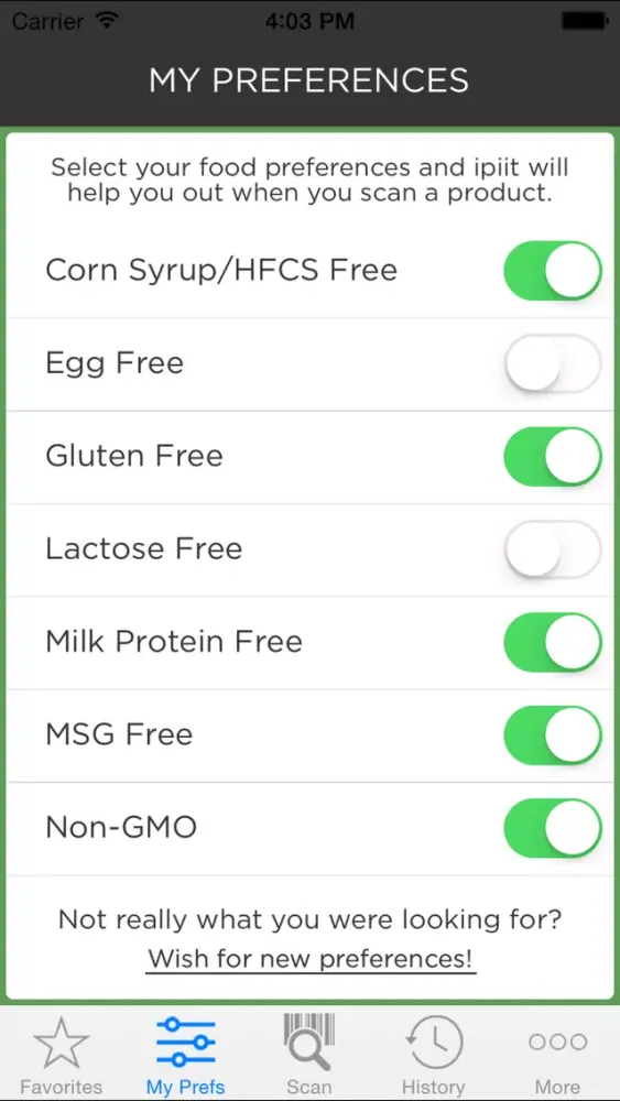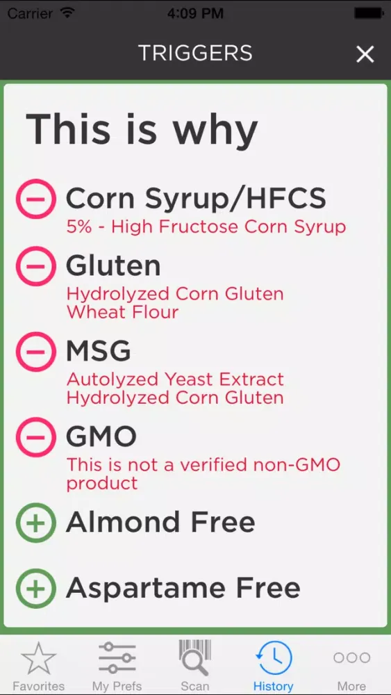 * Create personalized preferences and avoid allergy triggers - Gluten, Lactose, High Fructose Corn Syrup, non-GMO, Aspartame, Egg, MSG, Artificial Colors and Sweeteners