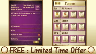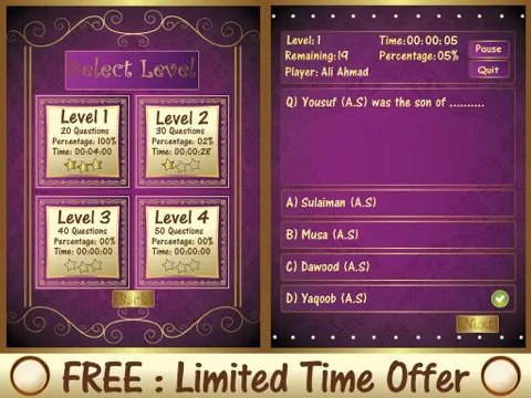 After playing any level your children can see his/her Level completion time, level percentage and his/her star rating all these things attract your children attention which lead them to keep engaged in the app and learn more about QURAN, islam , info about Ambiya kareem and Sahaba.