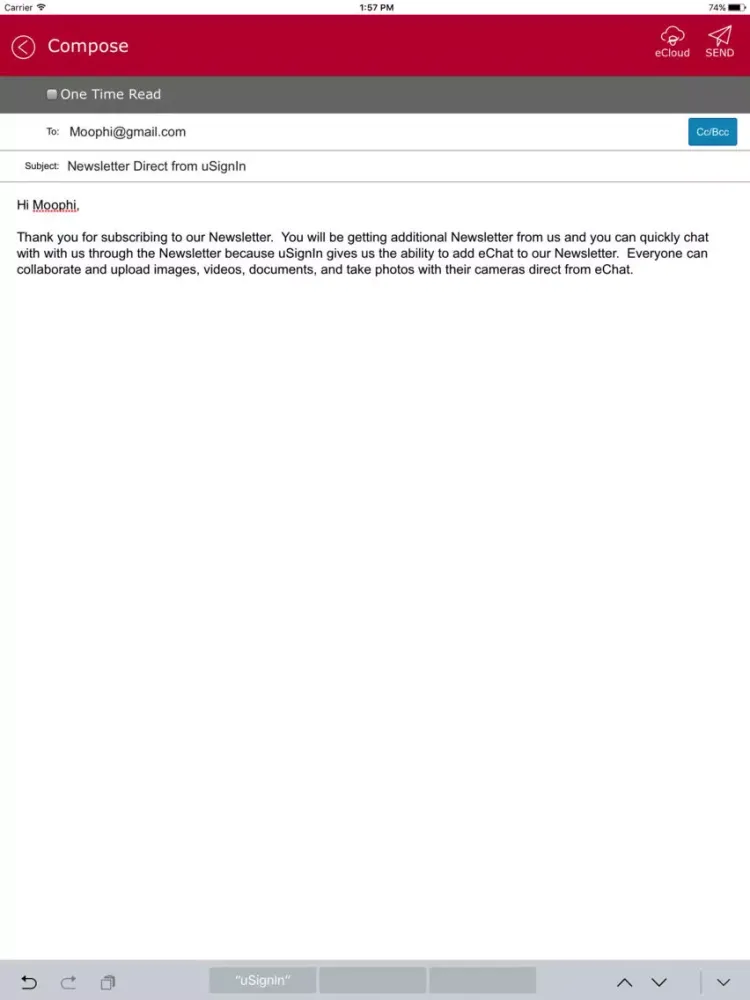 Chat with friends, family, and co-workers privately any time and any place. uSignIn DOES NOT STORE your chat session. Once you completely close the uSignIn app, all chat messages disappear. Giving you peace of mind!