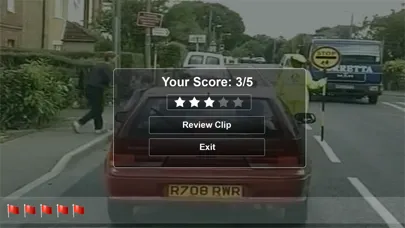 This application reproduces the experience of the real test. You identify the correct hazard by touching the screen on your device. The earlier you identify the hazard the more you score. The scoring goes from five to zero points. When you finish a clip you can play it in review mode to see exactly when the hazard begins and ends.