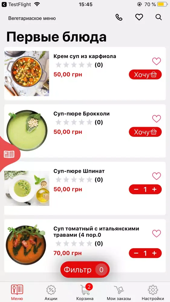 Используя мобильное приложение WoWDelight, Вы с легкостью можете заказать еду из вегетарианского, японского меню. Доступные в приложении сортировка по цене, подробные описания и качественные фотографии блюд помогут Вам выбрать именно то, что Вы хотите.