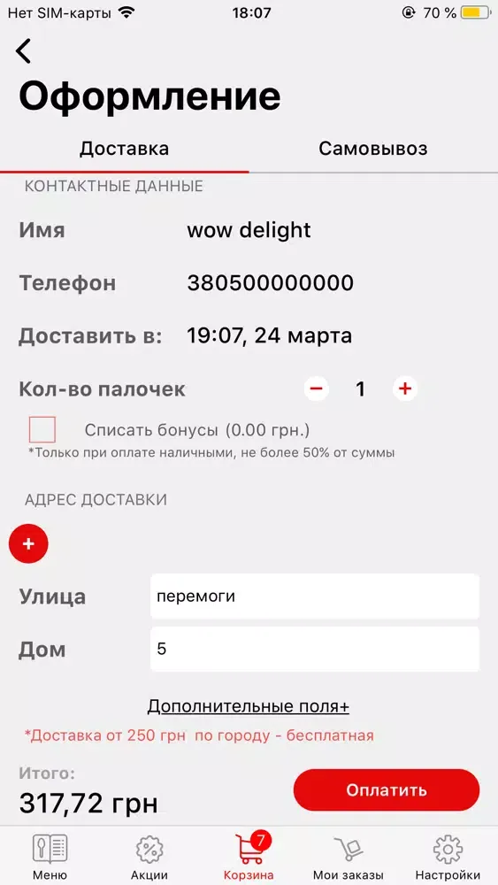 - выбрать удобный для Вас способ оплаты (картой, наличными, картой курьеру);