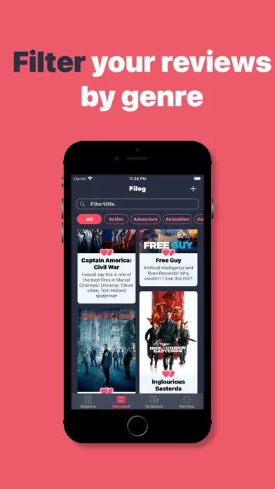 - Write a simple film review after watching and filter reviews you've left by genre.