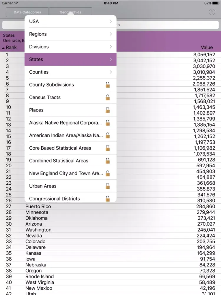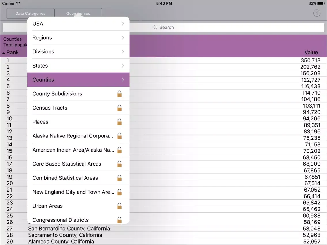 Simply choose from the many data categories and geographies and Top Rank Census will generate a list with your answer in a flash!