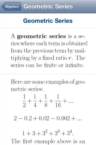 This app helps you with your math! Look up what you need, when you need it. All presented in a format that makes it easy to find what you need, and as easy as possible to follow it once you find it.
