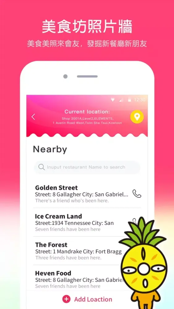 + 利用程式尋找附近的餐廳,查看大家的評價