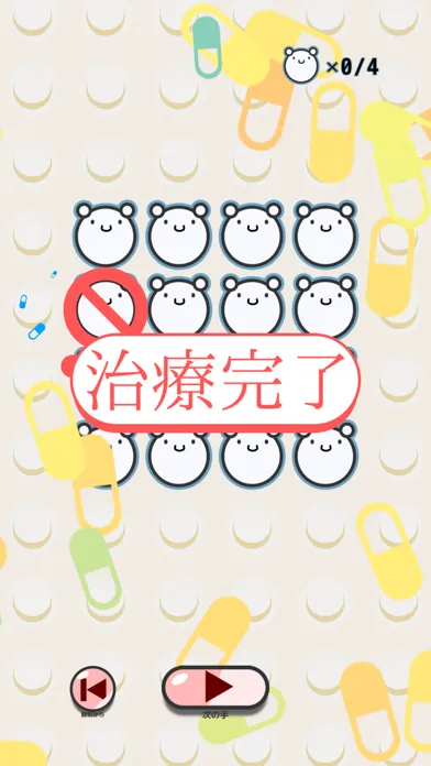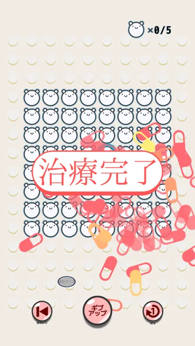患者さんの体に巣食う黒い「悪玉」を白い「善玉」で塗りつぶすように退治し、治療していくパズルゲームです。