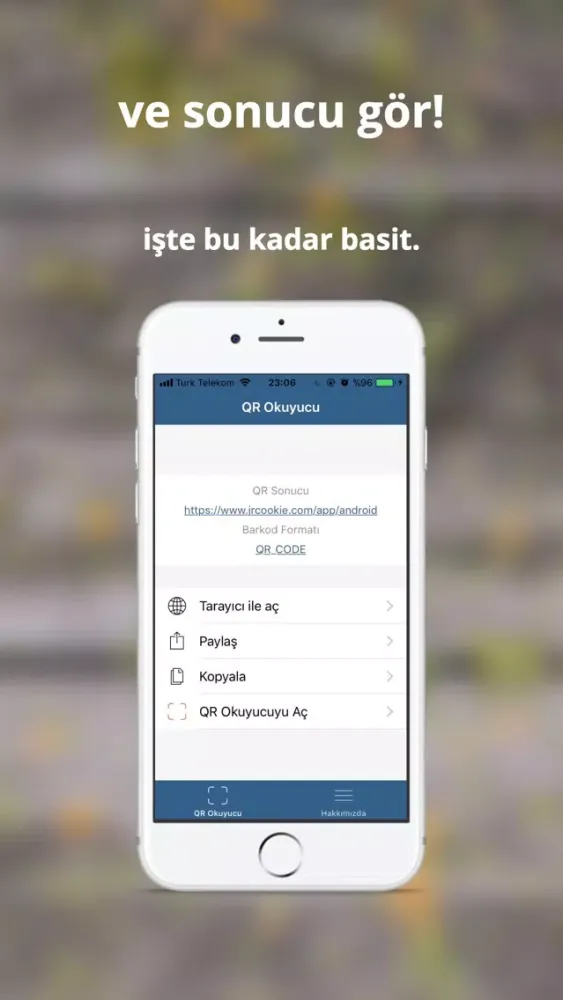 - You can copy clipboard the barcode result or you can share it with your friend with the application of your choice