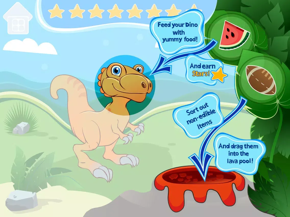 Feed a Hungry Dino by sorting out yummy food from inedible items.