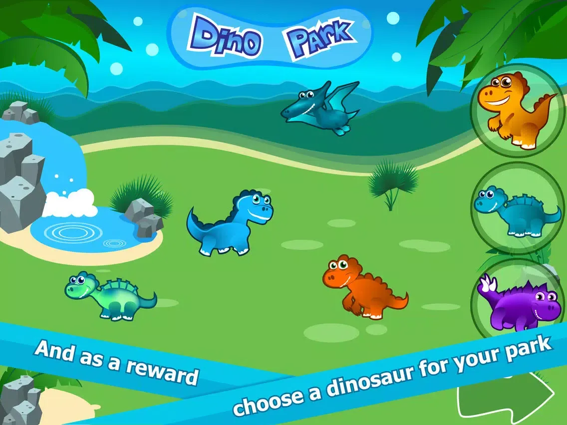 As a reward kids can fill their own Dino Park with unique dinosaurs and watch them moving and exploring the prehistoric grassland. With each level little player is challenged with more food and things to sort and more dinosaurs to add to his Dino Park collection.