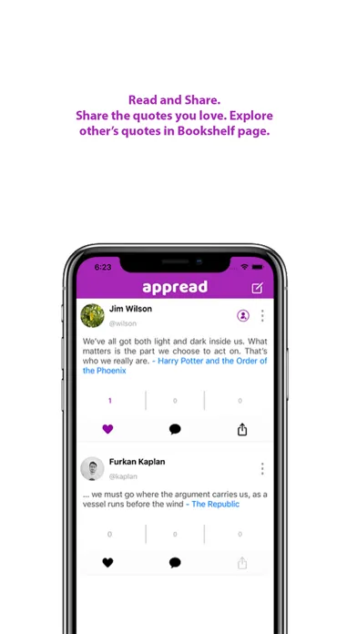 Appread is created for reading a lot and discovering new books using its valuable book quotes. Read a lot, share them and discover new ones to read later.