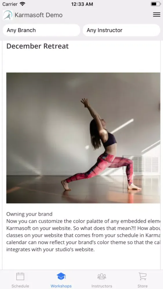 Karmasoft Student Portal App for iOS is a natural extension of your studio online presence. It allows your students to:
