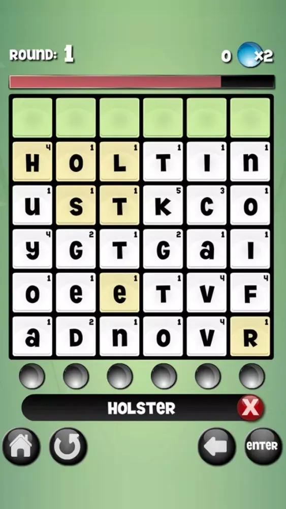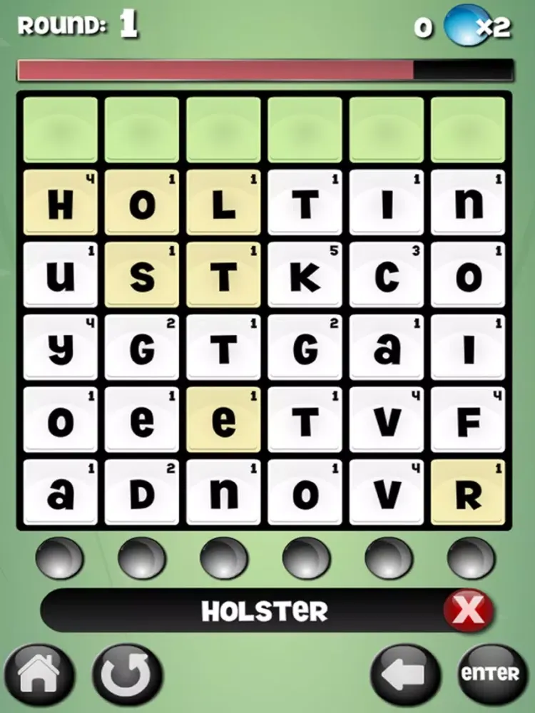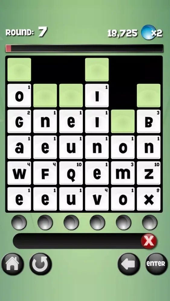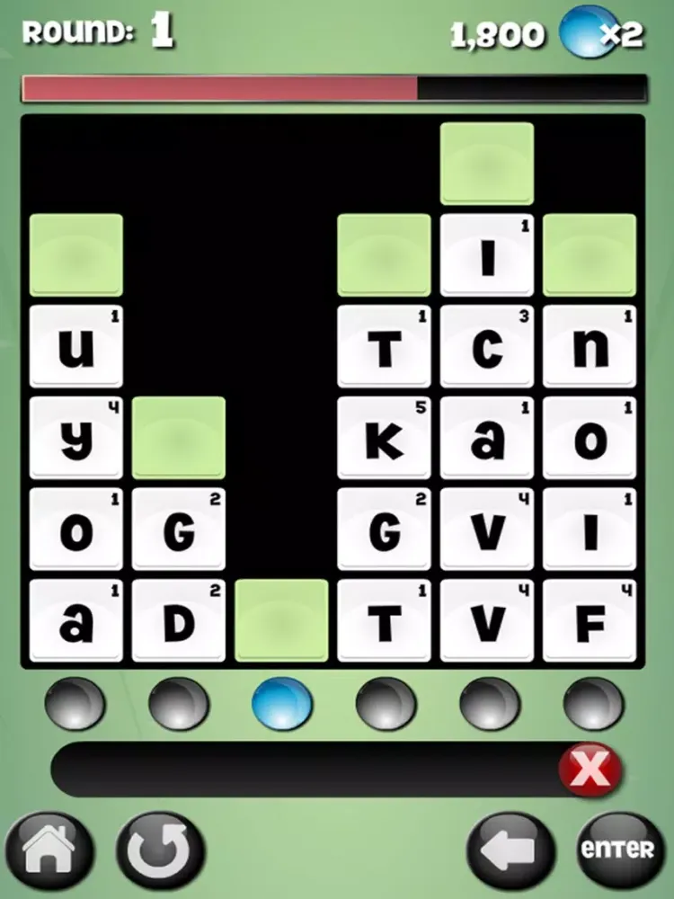 It’s a race against the clock to create as many words as possible with the given letters - tap away at the letter tiles to create any word 3 - 12 letters in length. Letter tiles used in valid words will disappear, and the tiles will drop. Once a colored tile reaches the bottom, it will activate a blue light. Each round requires a certain amount of active blue lights before progressing to the next round. Strategy will be required in order to get the colored tiles to reach the bottom, so be aware of your remaining letters.