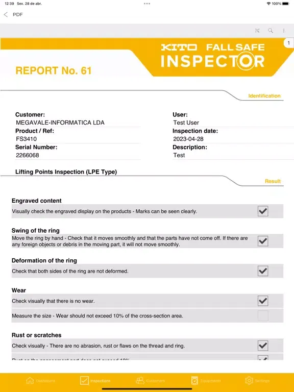 However, you can inspect any PPE brand simply registering the Serial Number. After doing the inspection, the system will generate an official inspection report.