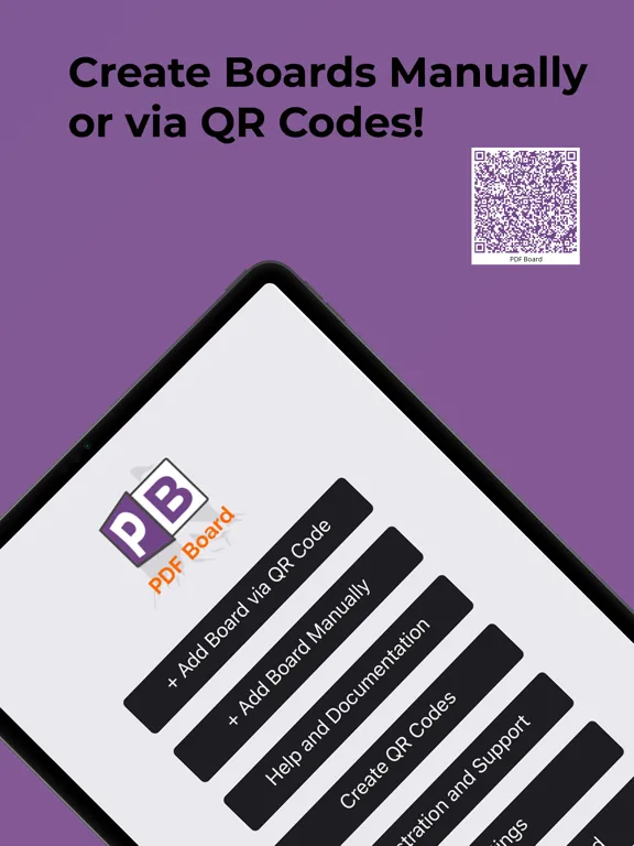 You can create a board manually or we have a simple form to add your URL and name your board and easily generate a QR code for sharing. We recommend using one URL and naming the PDFs for the board 1.pdf - 9.pdf. That is the most simple design, but we allow you to enter 9 unique URL and file names if you like. Either way, you can generate a QR code to email and/or text for sharing your board with others.