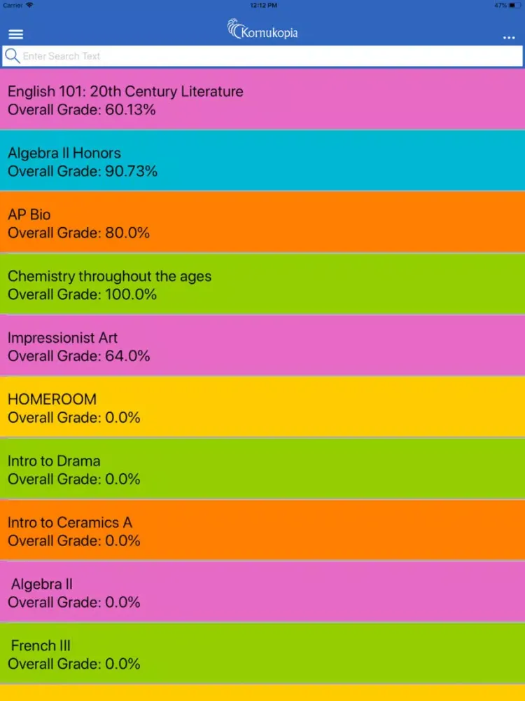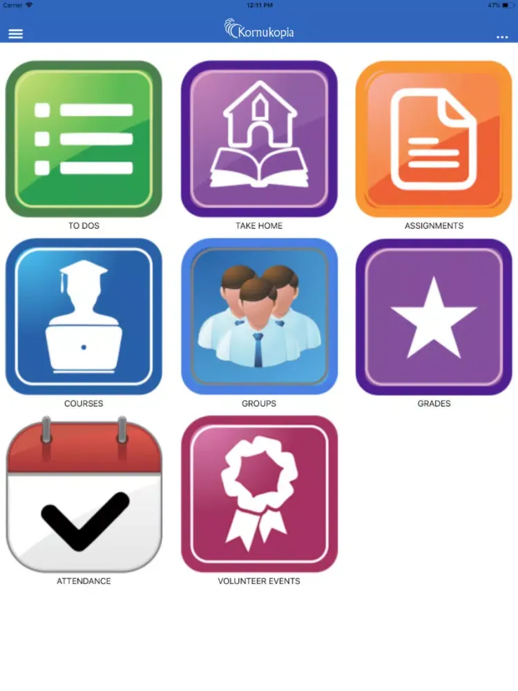 Kornukopia' Learning Management System (LMS) and app is part of the Kornukopia education ecosystem of tools used by colleges and k-12 education environments. While deceptively simple and useful to the end-user this system/app becomes the baseline for all school operations and communications. This system and app is used by students, instructors, staff, administration and parents in the college and k-12 education environments.