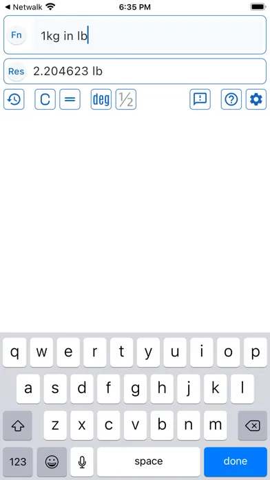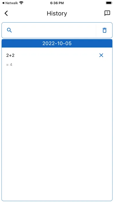 * Result of the calculation will be stored in history. By pressing the history button you can get access to the history where you can search through it, delete certain history items or clean up the whole history.