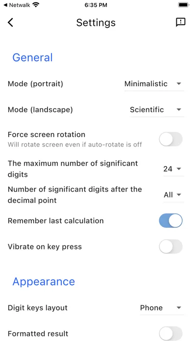 * Calculator will preserve current and previous calculations in between sessions, this function can be disabled in the settings.