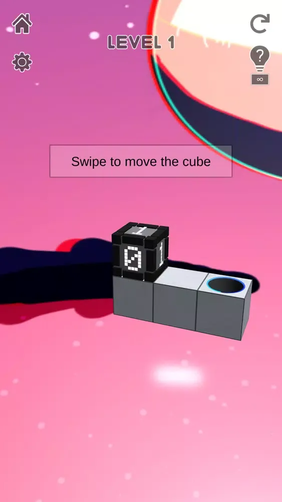 Intuitive controls! Swipe to move the cube and hold to rotate camera. Control the cube and make it to the end.