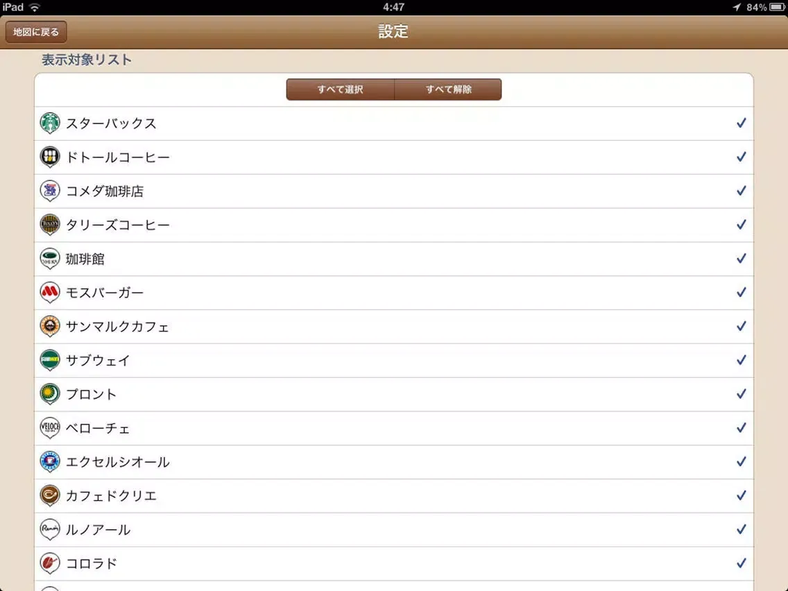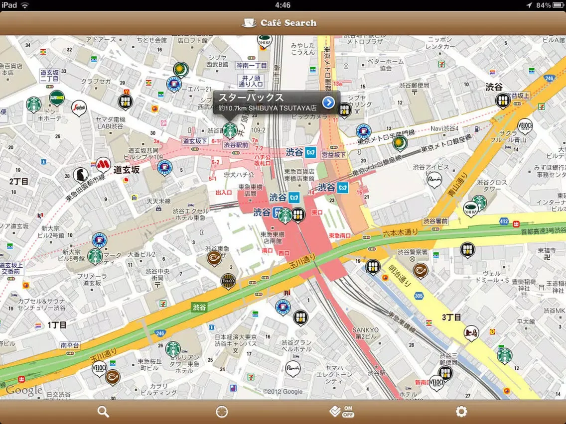 'Cafe Search' helps you to find Japanese coffeehouse chains quickly.