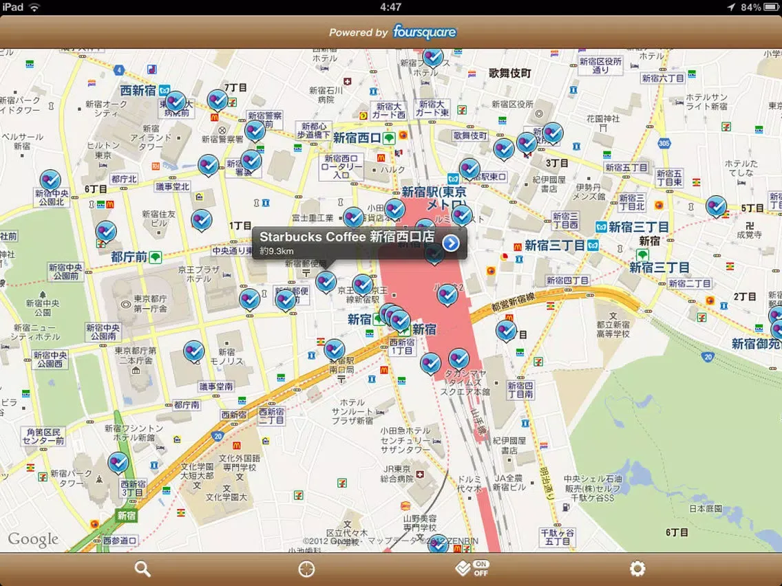 ・foursquareに登録されている最新の周辺カフェ情報を表示