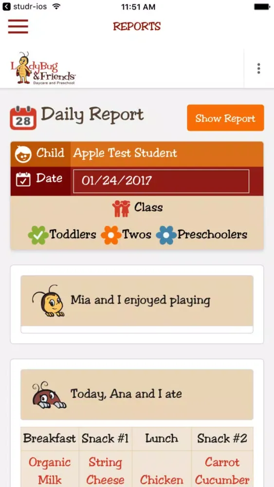 The App will allow Ladybug & Friends Parents to stay informed on the Daily Activities of their children during school hours.