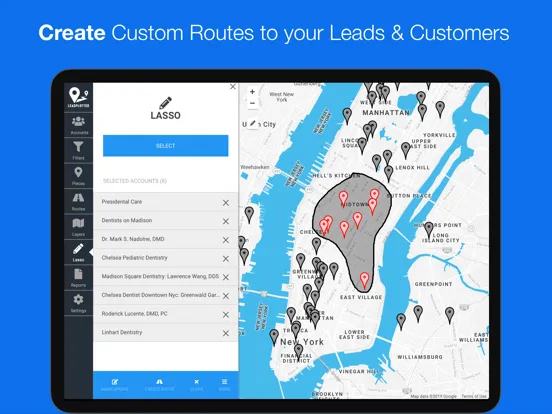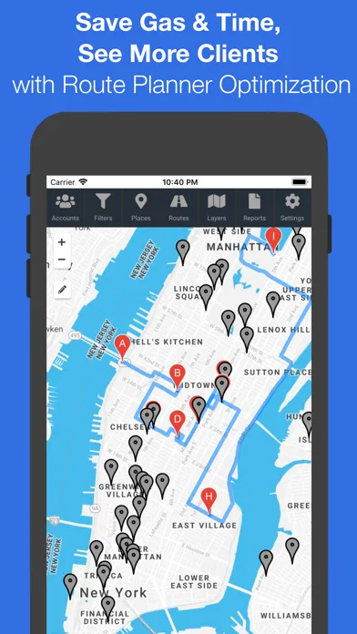 •Creates Multi-Stop Driving Routes to your Leads and Customers. Route Planning = Saves Gas, Money & Time!