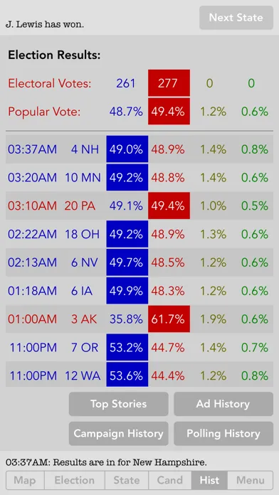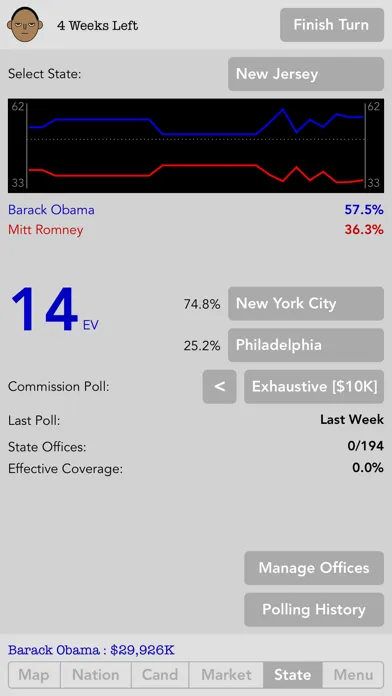 Election Manager 2016 is an abstract strategic election simulation game where you manage your ticket in an attempt to get your candidate elected to the office of President of the United States. Election Manager comes with a variety of scenarios, from a recreation of the 2012 election to a four-way election between independent parties. In addition, almost any imaginable two-to-four way election scenario can be designed by the player.
