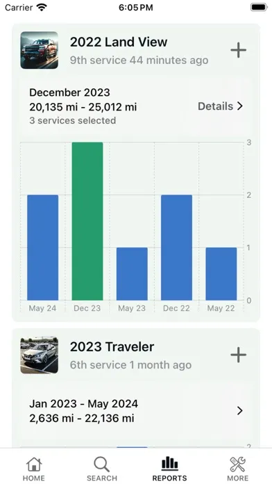 - Interactive service history chart: Long press on any bar in service history chart to see a summary of the selected services. clicking the view details button will jump to more details about the selected services.