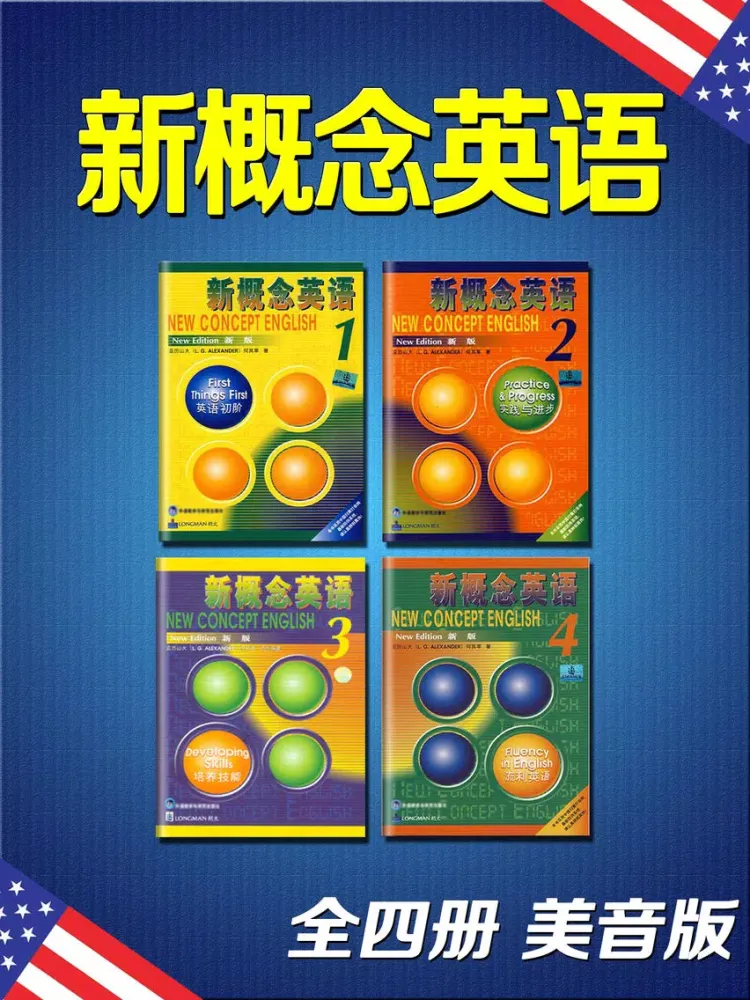 新概念英语全四册2016美音版HD 有声同步阅读听力口语教材英汉全文字典
