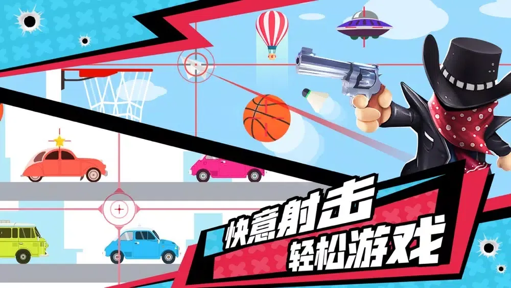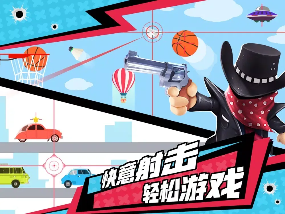 《绝地射击》是一款以第一人称视觉射击轻松休闲为主的射击单机游戏,超多的关卡场景,包括气球、靶子、牛奶杯、移动的 小汽车,丰富的枪械皮肤勃朗宁、M416这些完全不在话下,结合潮流创新玩法、及时竞技,卡通的画风、庞大的关卡设计 、完美的背景音乐都让我身临其境!