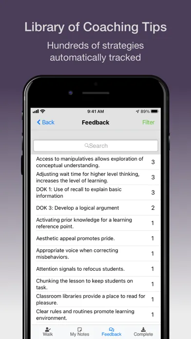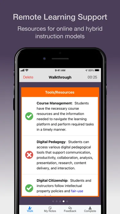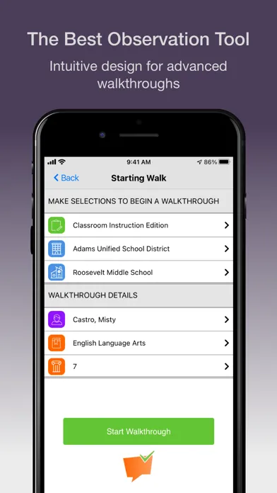 - A vast library of educational practices and feedback statements that can be incorporated into a customized walkthrough solution.