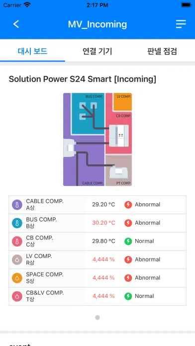 다양한 기기들의 정보를 대시보드를 통하여 한 눈에 볼 수도 있을 뿐만 아니라 기기 각각의 정보를 볼 수있고 열화상 카메라를 지원하여 기기의 온도 정보를 파악 할 수 있습니다.
