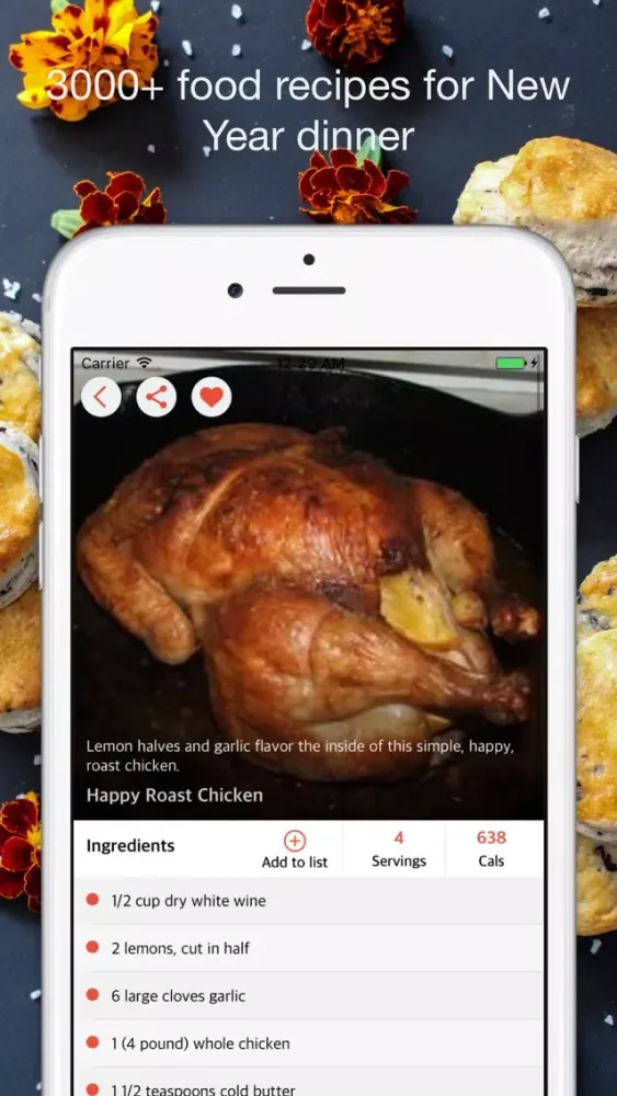 For every New Year 2017 recipe you get nutritional information so you can impress all your friends with great, healthy holiday meals. Also, you can add recipes to the Favorites section for easy access!