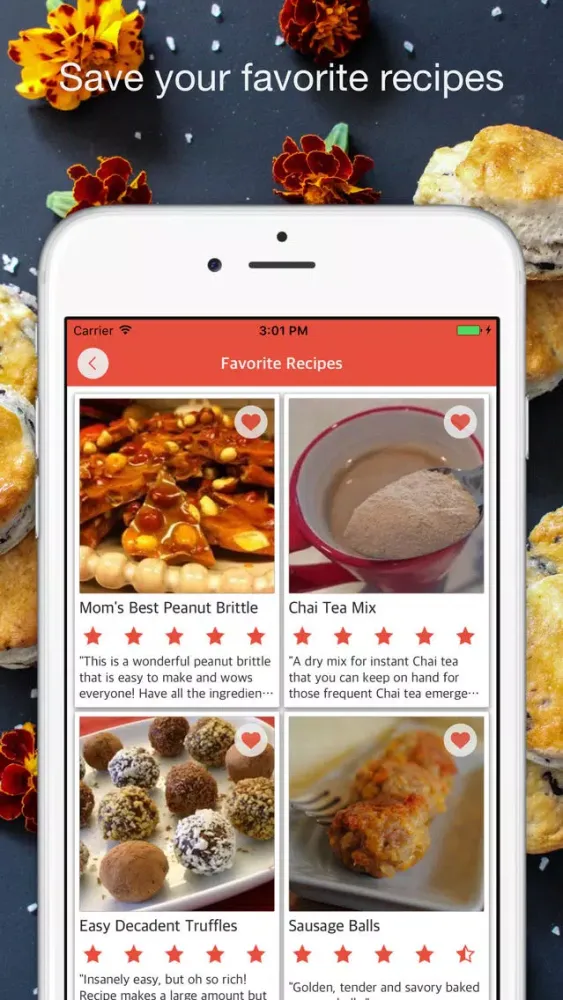 - Using Favorite section you can manage recipes you like.