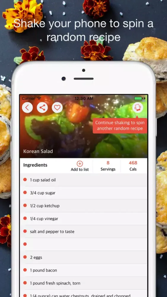 - Shake to spin a inspirational recipe - Dinner spinner.