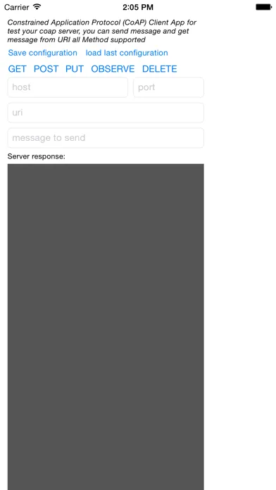 To use, don't inser 'coap://' only ip or url example: '4.coap.me' and port ex.' 5683' and uri name example like 'sink'.