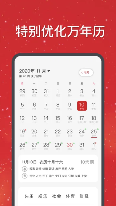 农历万年历是针对中国农历特别优化的本地万年历应用。