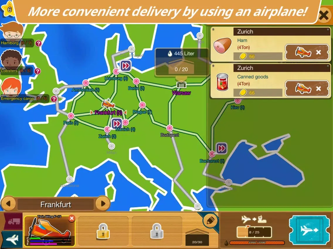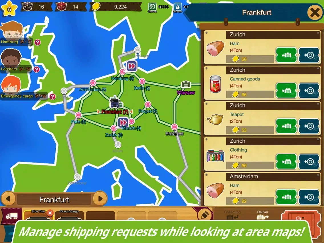 Become an owner of a world class distribution company by delivering freight quickly and accurately to cities requesting freight delivery all over the world. The more experience you accumulate, the more diverse requests you will be able to execute. You can use trucks and airplanes to transport freight over longer distances and more diverse locations.