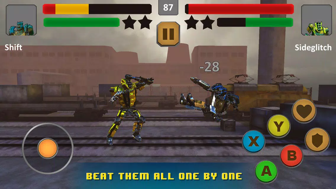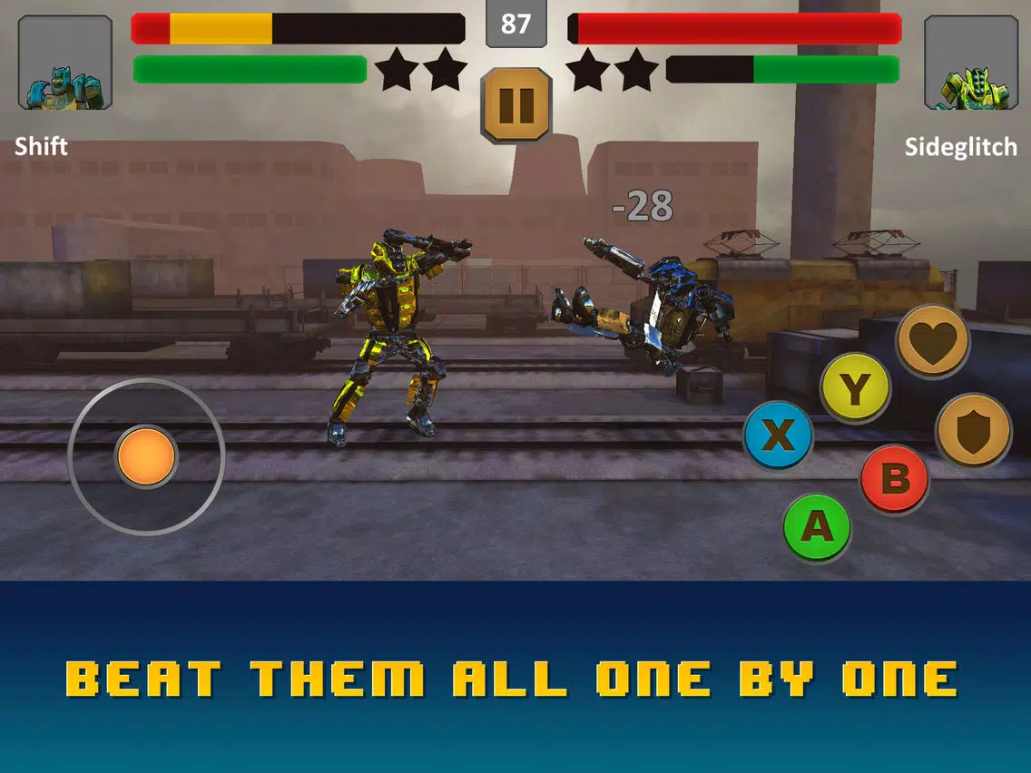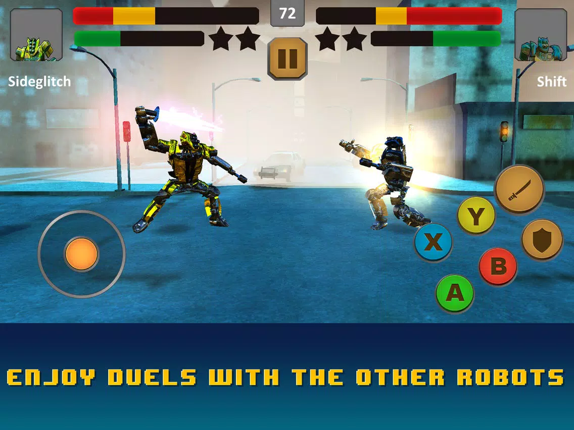 • Transforming robot fighters as your hero and enemies
