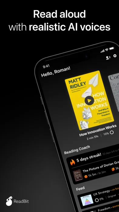 ReadBit is a free text-to-speech reader that helps you to read aloud books, PDFs, docs, web articles and many other file formats. It saves a lot of time by instantly converting any text to an audiobook, reading all the information at your desired speech rate and providing an excellent listening experience with natural lifelike voices.