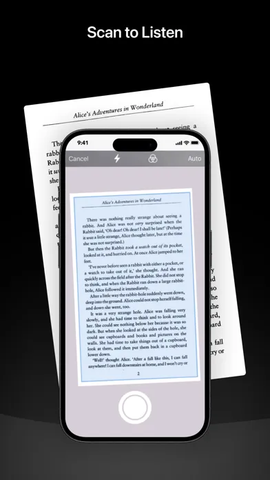 - Scan physical documents with your camera and listen