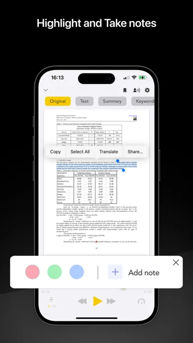 The text reader highlights every word while reading out loud. You can scan physical documents and books to read along while listening. Highlighting the text increases your focus and helps you retain more information than just reading.