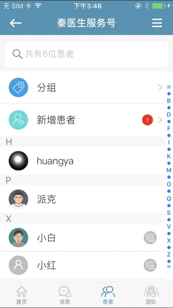 • 患者管理 —— 可便捷创建患者、查找患者,可对患者设置标签分组管理,同时可以快速掌握患者基本信息、疾病情况及用药情况;