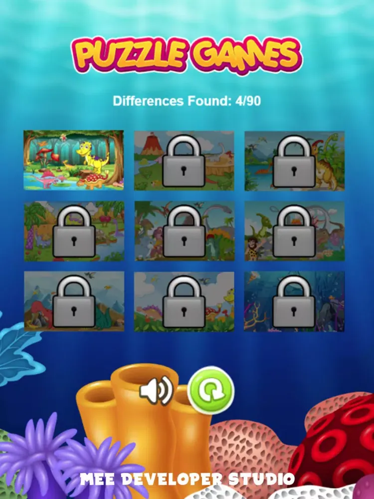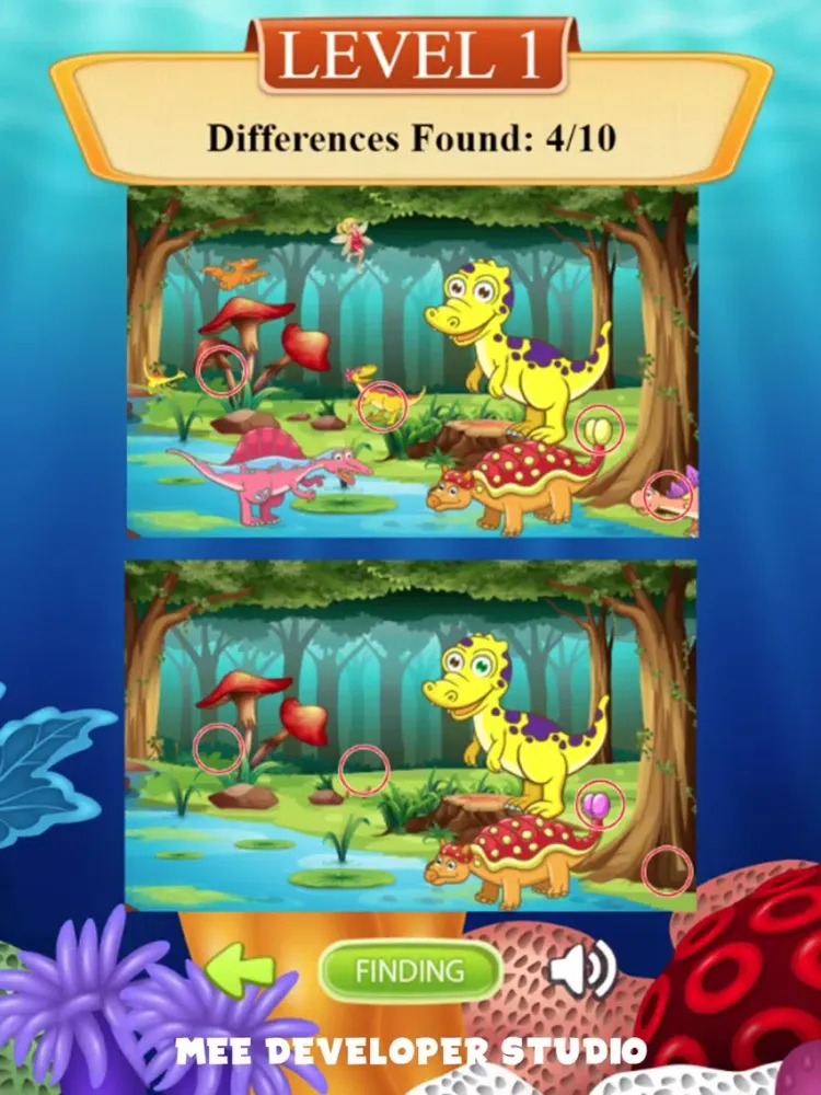 Dino Puzzle Hidden Dinosaur game includes a lot of find difference puzzle.