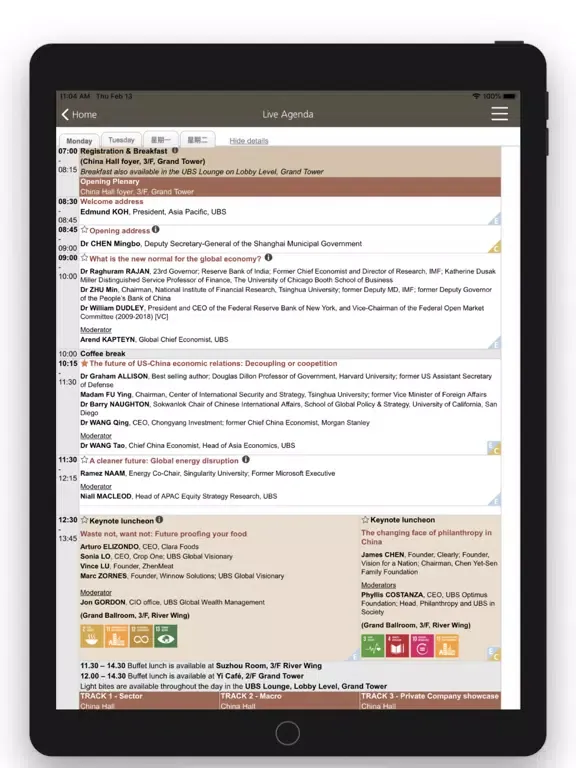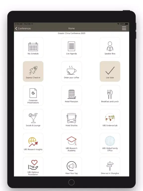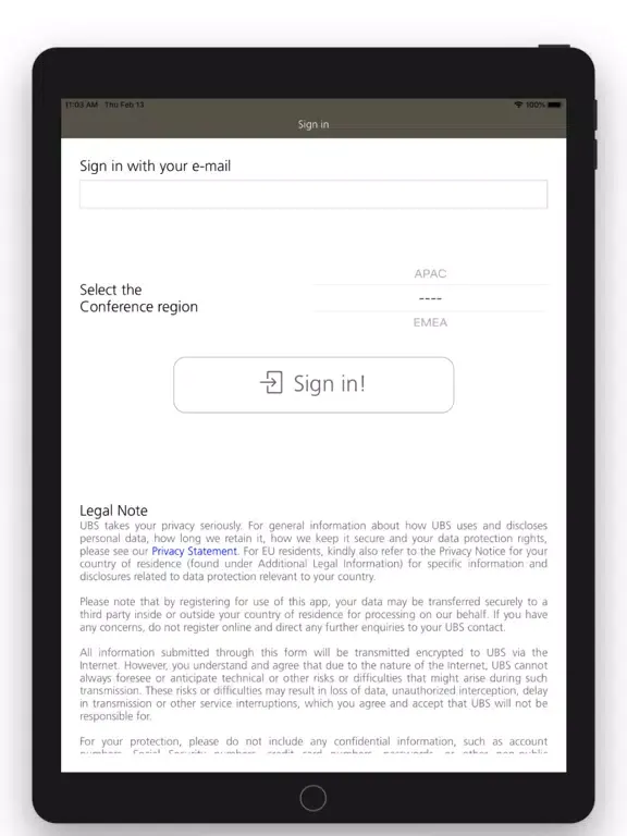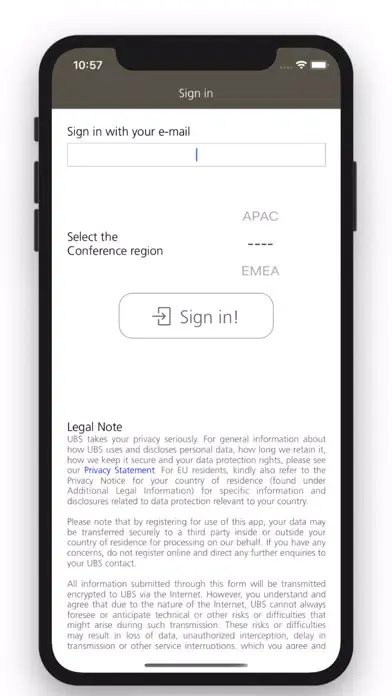 The UBS Conference is a one-stop application to access all UBS APAC and EMEA conferences. View your bespoke meeting schedule, agenda, speaker and detailed information about the conference.