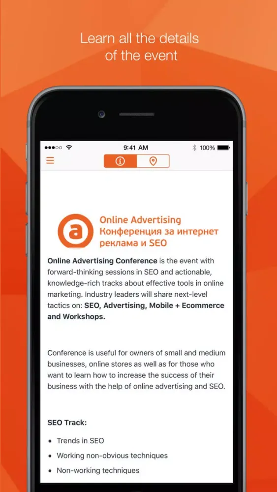 This is the official app for the “Online Advertising Conference in Sofia, Bulgaria”, 31st of March, which provides you with up-to-date conference information directly on your iPhone.