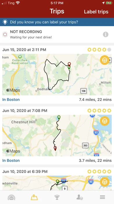 - Scoring and Driving Achievements: Compare scores anonymously and earn badges for driving achievements